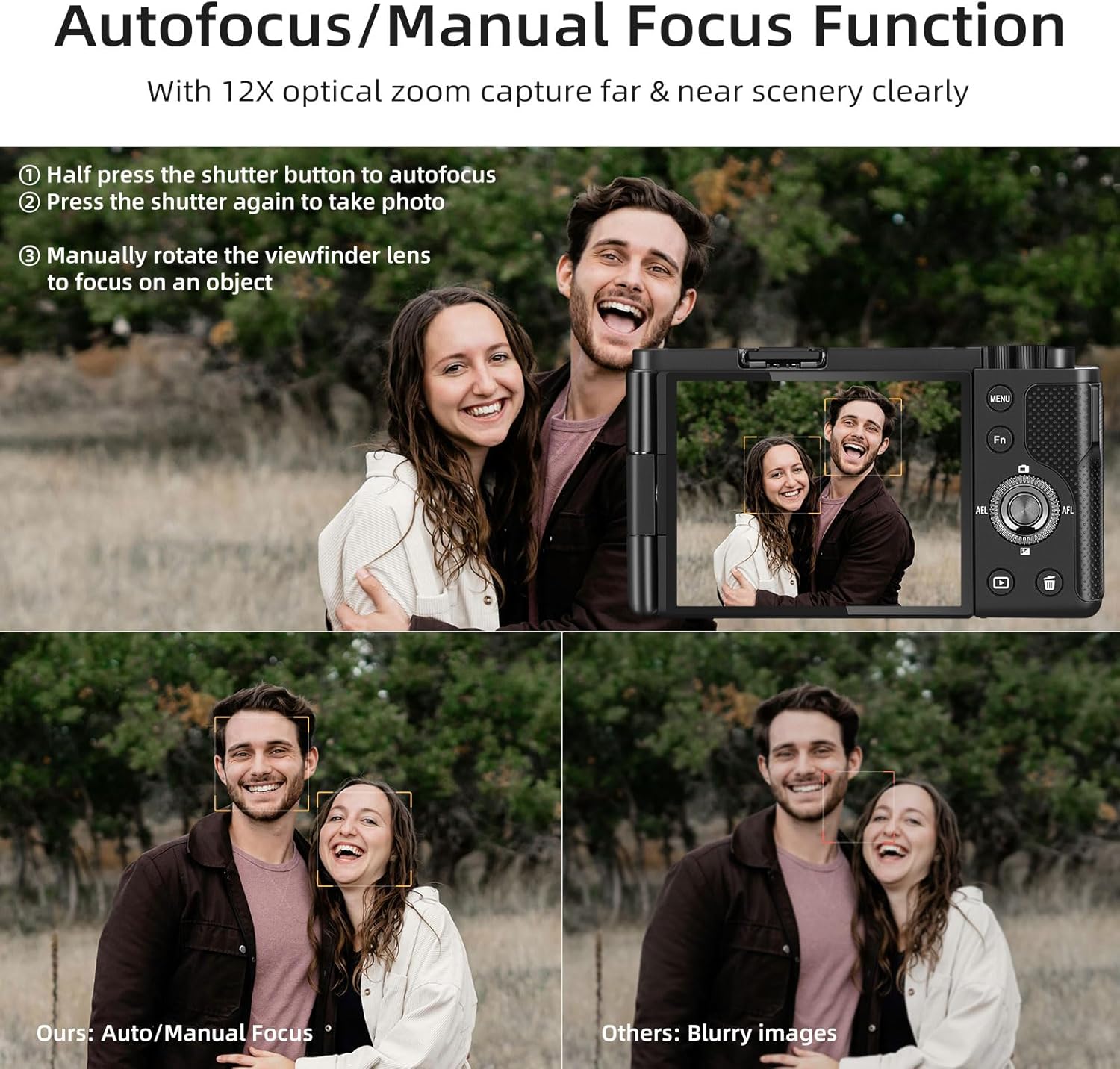 ORDRO G730 5K Mirrorless Camera 12x Optical Zoom, 3.2″ Vari-Angle Touchscreen, Auto/Manual Focus for Vlogging and Photography